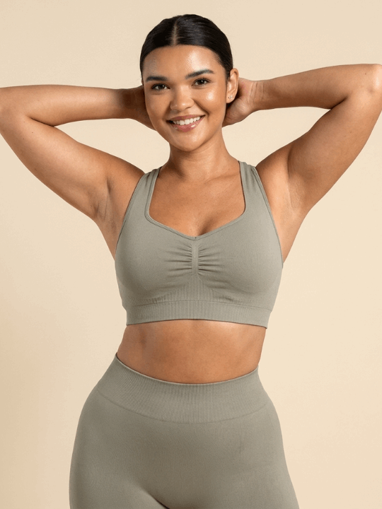 Combineer deze BH met de bijpassende legging en zip-top in één gestroomlijnde look: de LumaSport Set.